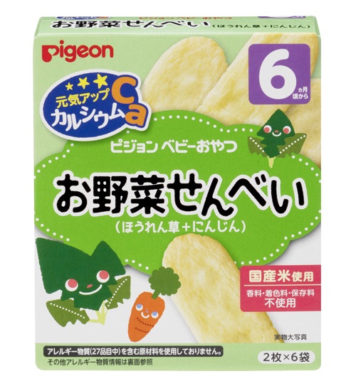 – Bánh ăn dặm Pigeon vị rau bina, cà rốt dành cho bé 6 tháng tuổi trở lên