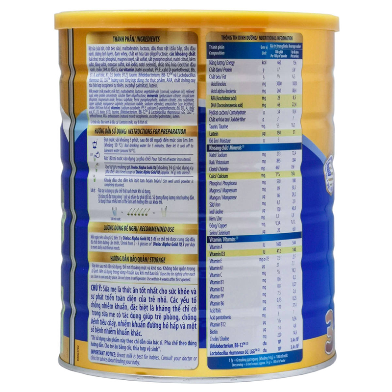 Sữa Nuti IQ Gold 3 – Dành cho bé 1 – 2 tuổi.