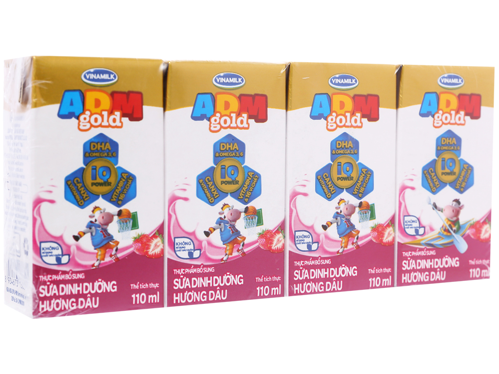 Sữa tiệt trùng Vinamilk ADM Gold hương dâu thơm ngon, dễ uống. Trong sữa có bổ sung các dưỡng chất như vitamin A giúp sáng mắt, vitamin D và canxi phát triển chiều cao và vitamin B, omega 3 tốt cho trí nhớ.