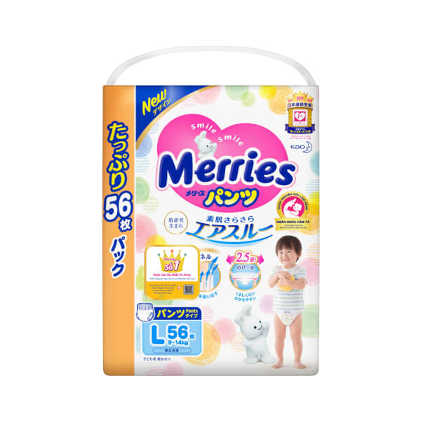 Tã quần Merries – một sản phẩm mang tính đột phá đến từ Nhật Bản, khác biệt hoàn toàn so với những loại tã giấy khác trên thị trường, đặc biệt mỏng nhẹ giúp bé tung tăng chạy nhảy suốt 24h mà vẫn khô thoáng và êm dịu.