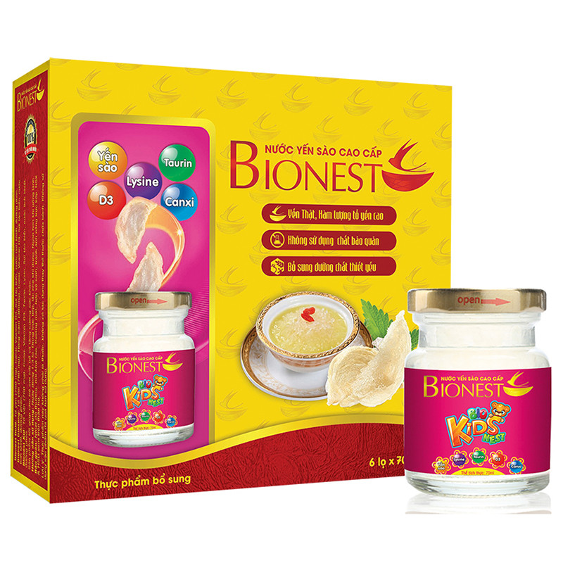 Từ xa xưa, Yến Sào đã luôn là một tặng vật quý giá, bát bữu chốn cung đình, được các bậc vương tôn quý tộc trao tặng người thân khi tuổi cao, lúc sức yếu, cần bồi bổ và tăng cường sức khỏe. Ngày nay, được nghiên cứu bởi các chuyên gia dinh dưỡng về Yến, Nước Yến Sào cao cấp BioNest Kids chính là giải pháp Dinh dưỡng tối ưu giúp BỒI BỎ SỨC KHỎE cho trẻ Thành phần chính Yến sào thiên nhiên (18%). Giúp bổ sung dinh dưỡng, phục hồi sức khỏe.